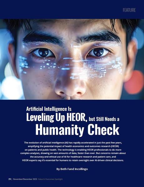 The evolution of artificial intelligence (AI) has rapidly accelerated in just the past few years, amplifying the potential impact of health economics and outcomes research (HEOR) on patients and public health. The technology is enabling HEOR professionals to do more complex analyses, drawing on vast amounts of data, faster than ever. But concerns remain about the accuracy and ethical use of AI for healthcare research and patient care, and HEOR experts say it’s essential for humans to retain over...
